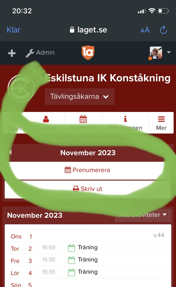 Prenumerera på aktiviteterna till er kalender i mobilen