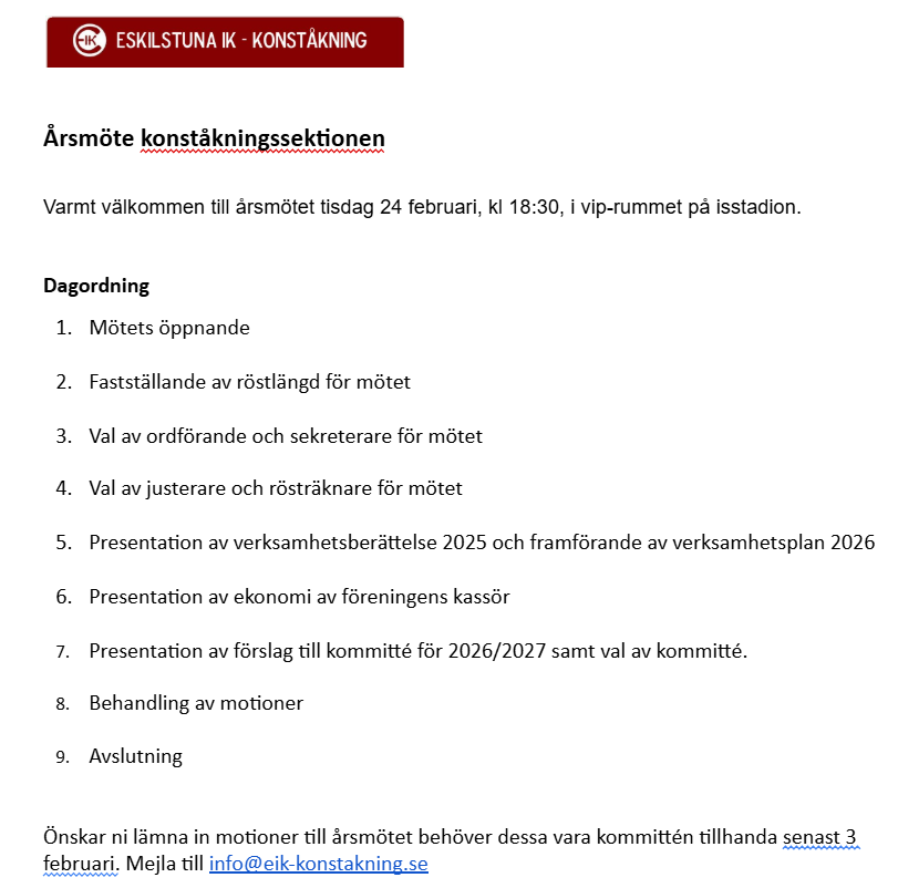Klicka på bekräftelselänken i det mejl vi skickat dig för att börja ta emot uppdateringar från Eskilstuna IK Konståkning.