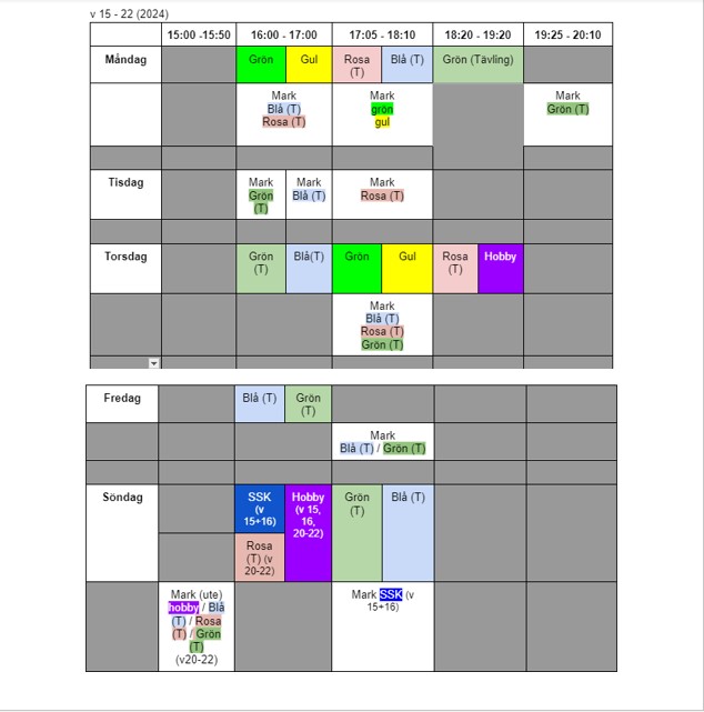 Nu är träningsschemat för veckorna 15-22 publicerat. (Menyval "träningstider").